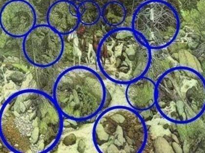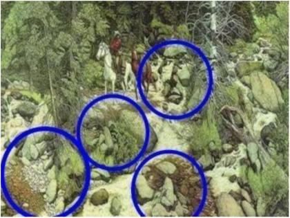 या पेंटिंगमध्ये ४ चेहरे सहजपणे दिसतात. पण बाकीचे राहिलेले चेहरे मात्र लोकांना हैराण करत आहेत. कारण ते सहजपणे दिसत नाहीत. ते बारकाईने, डोकं शांत ठेवून शोधावे लागतात. तेव्हाच ते तुम्हाला दिसतील. हे चेहरे मोठे आहेत. इतकंच नाही तर ते दगड आणि गवतात लपलेले आहेत.