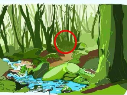 फोटोत तुम्हाला एक जंगल दिसत आहे ज्यात एक नदी वाहत आहे, झाडी आणि दगडही आहेत. पण यात एक प्राणी आहे. तो म्हणजे हरीण. हरीण झाडांमध्ये लपलं आहे. ते तुम्हाला 7 सेकंदात शोधायचं आहे. पण हे काम काही सोपं नाही.