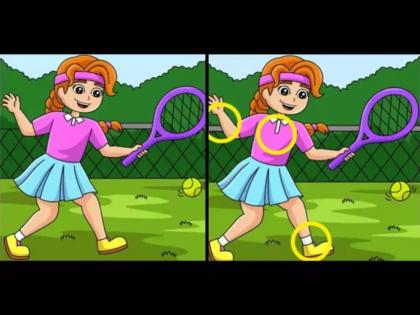 हे दोन्ही फोटो दिसायला अगदी एकसारखे आहेत. दोन्हींमध्ये एक मुलगी टेनिस खेळताना दिसत आहे. तिच्या शूजचा रंग पिवळा आहे. गुलाबी रंगाची टीर्शट आहे. आकाशी रंगाचा स्कर्ट आहे. हातात जांभळ्या रंगाची रॅकेट आहे. तसेच हिरव्या रंगाचा बॉल, बॅकग्राउंडमध्ये नेट आणि हिरवीगार झाडी आहेत. तुम्हाला या सगळ्या गोष्टी बारकाईने बघून यातील फरक शोधायचा आहे.