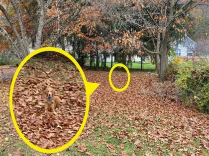 फोटोत झाडांच्या पानांचा खच पडला आहे. याच पानांच्या खचात हा कुत्रा बसलेला आहे. पण तो सहज दिसणार नाही. तो तुमच्या डोळ्यांसमोरच आहे. पण झाडांच्या पानांसारखाच कुत्र्याचा रंग असल्याने तुम्हाला जास्त मेहनत करावी लागणार आहे. तो फोटोच्या एका बाजूला आहे. तुम्हाला अजूनही तो दिसला नसेल तर खाली उत्तर दिलं आहे.