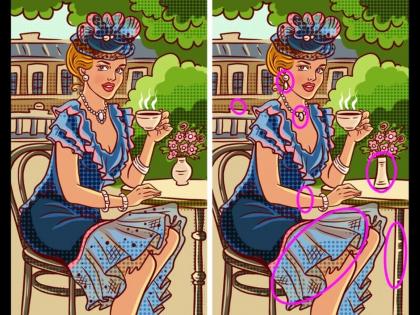 तुमच्यासमोर जो फोटो आहे त्यात तुम्हाला एक तरूणी हातात कप घेऊन काहीतरी पिताना दिसत आहे. त्या तरूणीमागे एक इमारत दिसत आहे. पहिल्यांदा पाहिलं तर फोटो एकसारखं दिसतो. पण जेव्हा तुम्ही बारकाईने हा फोटो बघाल तर यात तुम्हाला पाच फरक दिसून येतील. जे तुम्हाला 7 सेकंदात शोधायचे आहेत.