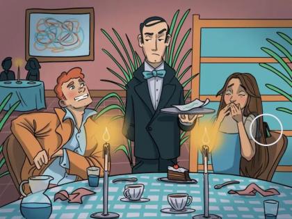 रेस्टॉरंटचं बिल भरण्याची वेळ आलीय आणि तरुणीला डेटवर घेऊन आलेल्या तरुणाला त्याचं पाकिटच सापडत नाहीय असं हे एक चित्र कोडं आहे. चित्रातच त्याचं पाकिट दडलंय आणि तेच शोधून दाखवण्याचं आव्हान या कोड्यातून देण्यात आलं आहे. बरं तुम्ही चित्रात दडलेलं पाकिट शोधून आपल्या दोस्ताला मदत करालही पण खरं आव्हान असंय की ते पाकिट तुम्हाला अवघ्या १० सेकंदात शोधून दाखवायचं आहे. जास्त वेळ घेऊ नका, कारण तुम्हाला तर माहितंच आहे...दोस्ताच्या इज्जतीचा सवाल आहे! लगेच कामाला लागा...