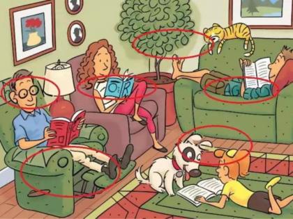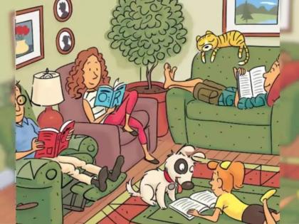 तुमच्या समोर असलेला फोटो बारकाईने बघा. यात एक रूम दिसत आहे. ज्यात चार-पाच लोक आणि दोन पेट्स आहेत. सगळेच पुस्तक वाचण्यात बिझी आहेत. रूममध्ये बऱ्याच गोष्टी ठेवल्या आहेत. यातील काहींवर मोठमोठ्या अक्षरात इंग्रजीचे काही शब्द लिहिले आहेत. हेच शब्द तुम्हाला शोधायचे आहेत. हे चॅलेंज तुम्हाला 10 सेकंदात पूर्ण करायचं आहे.