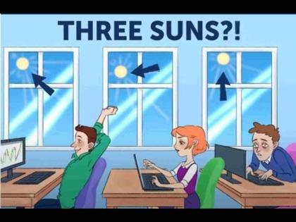 वरच्या फोटोत तुम्ही यातील चूक बघू शकता. फोटोतील चूक ही आहे की, तिन्ही खिडक्यांमध्ये तीन सूर्य दिसत आहेत.
