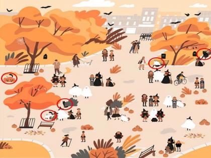 या फोटोमध्ये हेलोवीनचा सीन बनवण्यात आला आहे. यात काही मुले कॉस्ट्यूम घालून दिसत आहेत. ही मुले बागेत खेळत आहेत. तर काही मोठे लोकही इथे आहेत. त्यांच्या मधे पाच मांजरी लपवण्यात आल्या आहेत. ज्या तुम्हाला शोधायच्या आहेत.