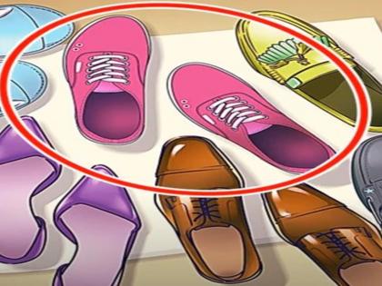 जर तुम्ही फोटो बारकाईने बघाल तर तुमच्या लक्षात येईल की, गुलाबी रंगाच्या शूजमध्ये एक चूक आहे. गुलाबी रंगाचे शूज दोन्हीही एकाच पायाचे आहेत. बाकी इतर सगळे शूज व चप्पल जोडीने ठेवले आहेत. पण गुलाबी शूज एकाच पायाचे आहेत.