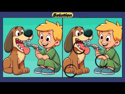 तुमच्यासमोर असलेल्या फोटोत तुम्हाला एक मुलगा एका डॉगीचे दात घासून देत असल्याचं दिसत आहे. ब्रशच्या मदतीने तो डॉगीचे दात स्वच्छ करत आहे. दोन्ही फोटो सुरूवातीला पाहिल्यावर एकसारखे दिसतात. पण मुळात फोटो एकसारखे नाहीत. त्यात तीन फरक आहे. जर तुमचे डोळे तीक्ष्ण असतील तर तुम्ही नक्कीत यातील तीन फरक १५ सेकंदात शोधू शकाल.