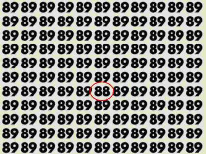 तुमच्यासमोर असलेल्या फोटोत तुम्ही बघू शकता की, त्यात तुम्हाला सगळीकडे 89 हा नंबर दिसत आहे. या ८९ च्या गर्दीत एक वेगळाही नंबर आहे. तो म्हणजे 88. हाच नंबर तुम्हाला तुम्हाला 7 सेकंदात शोधायचा आहे. जर तुमचे डोळे तीक्ष्ण असतील तर तुम्ही लगेच यातील वेगळा नंबर शोधू शकता.