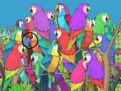 रंगीबेरंगी पोपटांमध्ये लपलं आहे एक फुलपाखरू, 7 सेकंदात शोधून दाखवा!