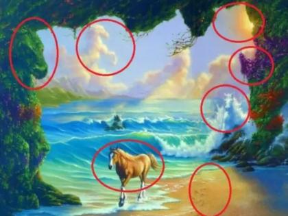 जर तुम्ही ठरलेल्या वेळेत यात सात घोडे शोधले असतील तर तुमचं अभिनंदन. तुमचे डोळे आणि मेंदू तीक्ष्ण आहेत. फोटोत तुम्हाला एक घोडा समुद्र किनारी धावताना दिसत आहे. पण यात आणखी सहा घोडे आहेत. पण ते घोडे तुम्हाला शोधायचे आहेत. जर दिसले नसेल तर निराश होऊ नका. ते शोधण्यात आम्ही तुमची मदत करू. खालच्या फोटोत घोड्यांना सर्कल केलं आहे.