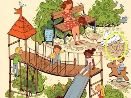 तुमच्यासमोर असलेल्या फोटोमध्ये तुम्हाला एक गार्डन दिसत आहे. ज्यात काही मुले खेळत आहेत, एक व्यक्ती त्याच्या कुत्र्याला फिरवत आहे. तर एक महिला फोन बघत असल्याचं दिसत आहे. यातच एक वाघही आहे. जो तुम्हाला 10 सेकंदात शोधायचा आहे.