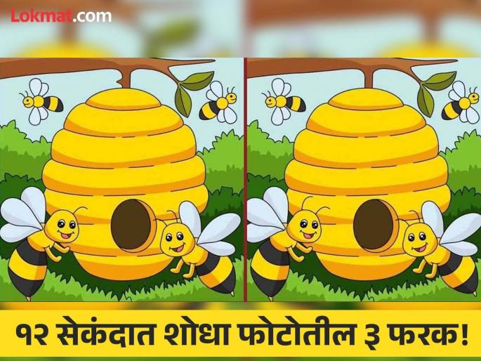 तुमच्यासमोर तुम्हाला एकसारखे दोन फोटो दिसत आहेत. त्यात मधमाश्या आहेत. ज्या झाडावरील फळातील रस पित आहेत. पण हे दोन्ही फोटो एकसारखे दिसत असले तरी एकसारखे नाहीत. त्यात ३ फरक आहेत. तेच तुम्हाला १२ सेकंदात शोधायचे आहेत.