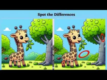 आता तुमच्यासमोर असलेल्या फोटोत तुम्हाला एक बेबी जिराफ झाडाची पाने खाताना दिसत आहे. त्याच्या तोंडात काही पाने आहेत. मागे झुडपं आहेत. दोन्ही फोटो एकसारखे दिसतात, पण यात तुम्हाला ३ फरक शोधायचे आहेत. तसं हे काम वाटतं सोपं पण सोपं नाहीये. फरक शोधण्यासाठी तुम्हाला मेहनत करावी लागणार आहे. खालच्या फोटोत तुम्हाला ३ फरक शोधायचे आहेत तेही १० सेकंदात.