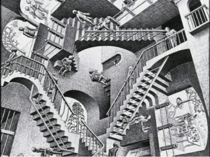 या फोटोत एक असं विश्व दिसतं जिथे गुरूत्वाकर्षणाचा नियम लागू नसतो. डच ग्राफिक कलाकार एमसी एस्चर यांनी तयार केलेली लिथोग्राफ प्रिंट एका समुदायाच्या लोकांच्या व्यवसायाला दाखवतो. फोटोत प्रत्येक ग्रॅव्हिटी सोर्समध्ये १६ लोकांना दाखवलं आहे. एकात सहा आणि इतर दोनमध्ये दहा. इल्यूजन यामुळे तयार होतं कारण तीन गुरूत्वाकर्षण स्त्रोतांना एकाच स्थानी दर्शवण्यात आलं आहे.
