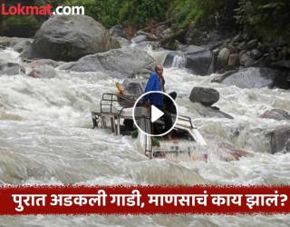 ढगफुटी झाली आणि पूर आला; गाडी नदीत अडकता ड्रायव्हर चढला टपावर, पुढे काय झालं?