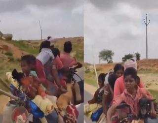 सोशल वायरल : एकच बाईकवर 7 लोक, दोन कुत्री, एक बकरी अन् कोंबडा; VIDEO पाहून चक्रावून जाल...