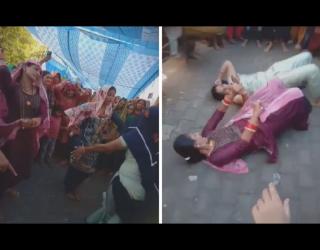 VIDEO : ढोल-ताशांसमोर बेधुंद झाल्या महिला, जमिनीवर लोळून लोळून केला तूफान डान्स