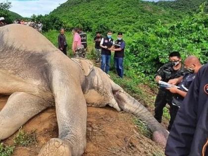 अन्नाच्या शोधात असलेल्या हत्तीचा थायलँडमध्ये मृत्यू झाला आहे. एका बागेजवळ असलेल्या विजेच्या तारांशी हत्तीच्या सोंडेचा संपर्क आल्यामुळे हत्तीला आपले प्राण गमवावे लागले आहेत. इंडीया टाईम्सने दिलेल्या माहितीनुसार ही घटना दक्षिण थायलँडमध्ये घडली आहे. स्थानिक लोकांना हत्तीच्या मृत्यूची सुचना ६ जूनला पोलिसांना दिली. पोलीस ज्यावेळी घटना स्थळी पोहोचले तेव्हा हत्तीच्या सोंडेवर जळल्याचे निशाण त्यांना दिसून आले. हत्तीचा मृत्यू झाला त्या ठिकाणी आंब्याच्या बागा आहेत. पोलीसांनी बाग मालकांशी विचारपूस केली.