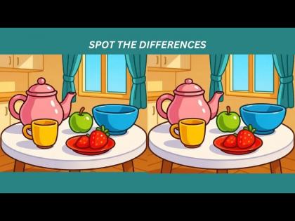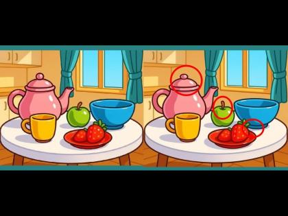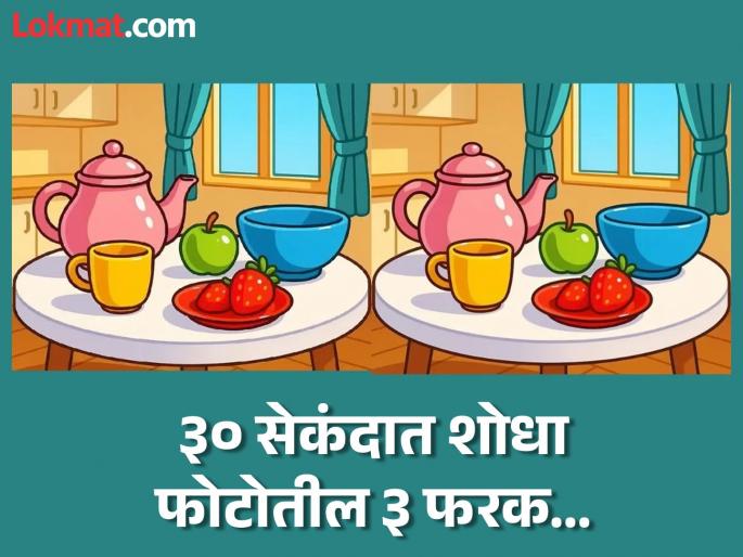 आपल्यासमोर असलेल्या फोटोत एकसारखी दिसणारी दोन चित्रे दाखवण्यात आली आहेत. ज्यात एका टेबलवर चहाची कीटली, कप, अॅपल, प्लेटमध्ये स्ट्रॉबेरी ठेवलेली दिसते. मागे बंद असलेली खिडकी आणि पडदे दिसत आहेत. पहिल्या नजरेत सगळ्याच गोष्टी सारख्याच वाटतात. पण मुळात त्या सारख्या नाहीत. त्यांमध्ये ३ फरक आहेत. जे आपल्याला ३० सेकंदात शोधायचे आहेत. जर आपण बारकाईने फोटो पाहिला तर आपल्याला नक्कीच यातील ३ फरक दिसून येतील.