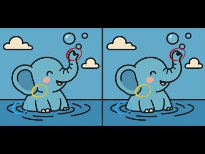 Spot the difference puzzle: पाण्यात आंघोळ करत आनंद घेत असलेल्या गोंडस हत्तीची ही दोन चित्रं नीट पाहा. पहिल्यांदा ती एकसारखी वाटतील, पण नीट निरीक्षण केल्यास या चित्रांमध्ये ३ फरक लपलेले दिसतील.