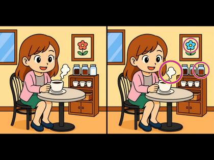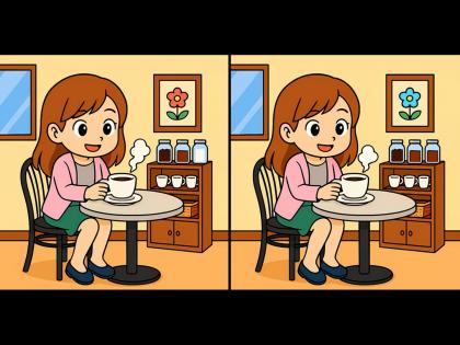 कॉफी पित असलेल्या मुलीच्या फोटोत आहेत ३ फरक, फोटो एकसारखे समजण्याची करू नका चूक