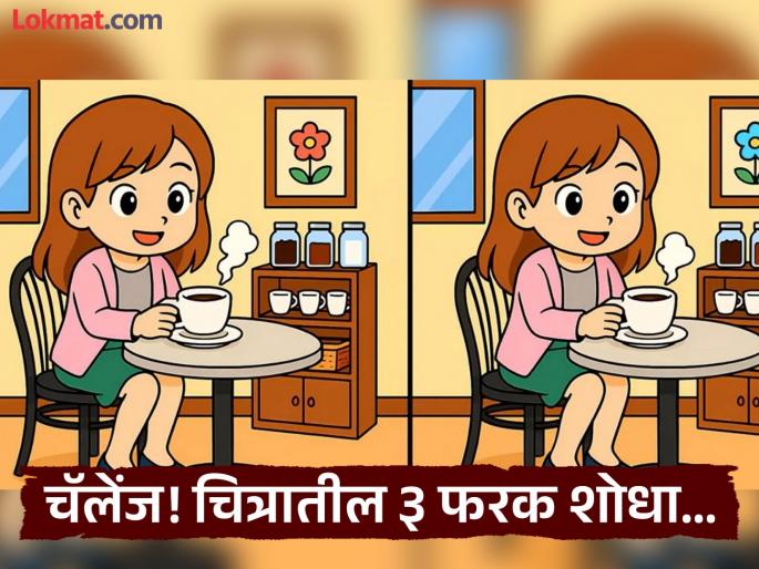 आपल्यासमोर जो फोटो आहे, त्यात आपल्याला एक मुलगी चहा पिताना दिसत आहे. सोबतच मागे काही वस्तू आहेत, भिंतीवर चित्रही दिसत आहे. दोन्ही फोटो सुरूवातीला एकसारखे वाटतात. पण यात तीन फरक आहेत. जर आपण बारकाईने चित्र पाहिले तर फरक नक्कीच दिसून येतील. पण यासाठी आपल्याकडे केवळ १८ सेकंदाची वेळ आहे.