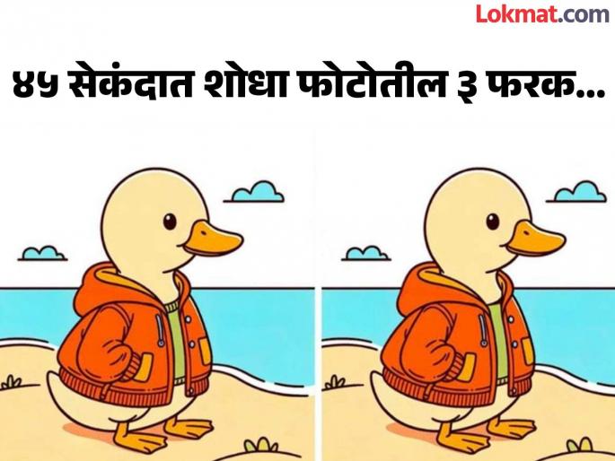 'स्पॉट द डिफरन्स' या फोटोंची खासियत ही असते की, दोन्ही फोटो सुरूवातीला एकसारखेच दिसतात. पण मुळात ते एकसारखे नसतात. त्यांमध्ये फार सूक्ष्म असे फरक असतात. या फोटोत आपल्याला हुडी घातलेलं बदक नदी किनारी दिसत आहे. या फोटोत ३ फरक आहेत. जे आपल्याला ४५ सेकंदात शोधायचे आहेत.