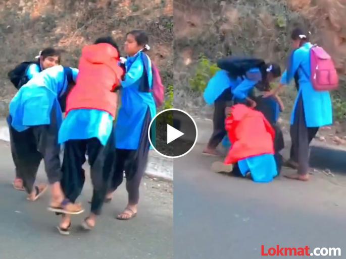 एक विद्यार्थीनींच्या हाणामारीचा एक व्हिडीओ व्हायरल झाला आहे. ज्यात काही मुली भर रस्त्यात एकमेकींना मारहाण करताना दिसत आहेत.
