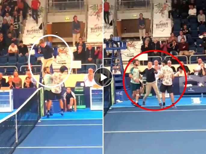 खेळाडूंनी हस्तांदोलन केल्यानंतर दोघांमध्ये जोरदार वादावादी झाली. त्यानंतर त्यांनी एकमेकांना धक्काबुक्की गेली. नेटमधून बाहेर आल्यानंतर दोन्ही खेळाडूंमध्ये बाचाबाची झाली, हाणामारीही झाली. अखेर चेअर अंपायरला राडा थांबवण्यासाठी यावे लागले. अंपायरने दोघांना दूर केले आणि प्रकरण कसेबसे निवळले. पाहा व्हिडीओ-