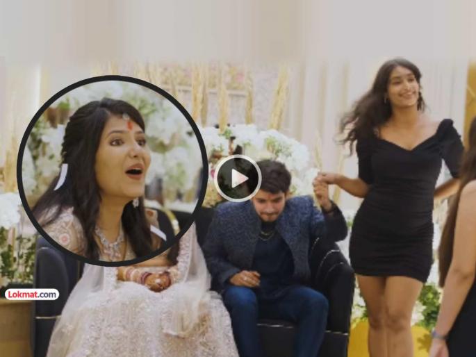 groom dance suprises bride viral video: सोशल मीडिया हे एक असे व्यासपीठ आहे जिथे छोट्या व्हिडीओ पासून मोठमोठ्या मुद्द्यापर्यंत सारंकाही झटपट व्हायरल होतं. बरेचवेळा लग्नात नवरदेव होणाऱ्या पत्नीला आश्चर्यचकित करण्यासाठी लग्नमंडपात किंवा संगीत सोहळ्यात एखादे सरप्राईज देतात. सध्या सोशल मीडियावर असाच एक व्हिडिओ व्हायरल होत आहे. व्हायरल क्लिपमध्ये चार मुली नवरदेवाला स्टेजवरून डान्स फ्लोअरवर नेतात. त्यानंतर जे घडते, ते पाहून वधूही आश्चर्यचकित झाल्याचे दिसते.