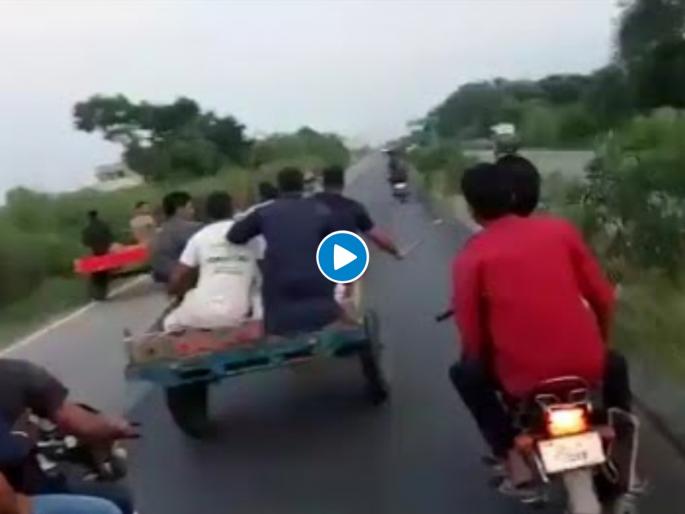 ते म्हणतात, जसं कराल तसं मिळवाल. याचं उदाहरण सांगणाराच हा व्हिडीओ आहे असं म्हणावं लागेल. या व्हायरल व्हिडीओमध्ये काही लोक म्हैस बांधली असलेल्या एका गाडीवर बसले आहेत. या गाडीसमोर आणखी एक गाडी आहे. यावरील लोक म्हशींना मारत आहेत आणि त्यांच्या क्षमतेपेक्षा वेगाने पळवत आहेत.