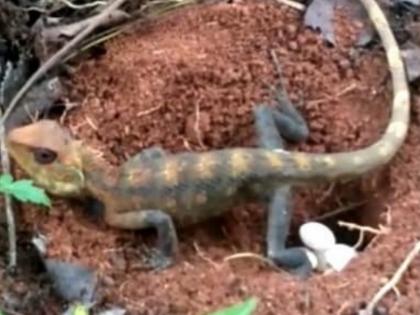 Video : बागेत मादी सरडा अंडी देताना कॅमेरात कैद; पाहा दुर्मीळ दृश्याचा व्हायरल व्हिडीओ