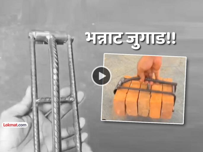 व्हिडिओमध्ये दिसते की, एका व्यक्तीने लोखंडी सळ्या किंवा लाकडी पट्ट्यांच्या मदतीने एक साचा (Clamp) तयार केला आहे. या साच्याच्या मदतीने तो एकाच वेळी ८ ते १० विटा अगदी सहजपणे पकडू शकतो. सामान्यतः मजुरांना हाताने एक-दोन विटा उचलाव्या लागतात किंवा डोक्यावर पाटी वाहून न्यावी लागते. मात्र, या 'जुगाड'मुळे विटा उचलणे सोपे झाले असून हाताला जखम होण्याची भीतीही कमी झाली आहे. पाहा व्हिडीओ-