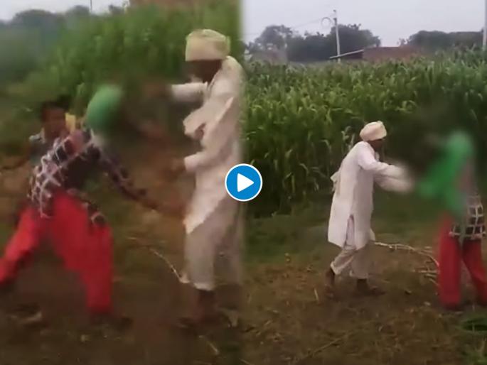 सासरा आणि सूनेच्या मारहाणीच्या या व्हिडीओत तुम्ही बघू शकता की, बराचवेळ दोघांमध्ये ओढाताण सुरू होती. नंतर सासऱ्याने मोठी काठी घेत सूनेला मारणं सुरू केलं. तर आपल्या बचावासाठी सूनेने ती काठी हिसकावून घेण्याचा प्रयत्न केला. पण तिला काही यश आलं नाही. तुम्ही बघू शकता की, सासरा सूनेवर लागोपाठ काठीने हल्ला करत आहे. शेतात झालेल्या या भांडणाचा व्हिडीओ व्हायरल झाला आहे.
