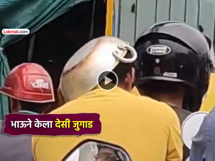 Video: कढई हेल्मेट..!! बाईकवरून जाताना पोलिसांना चकवण्यासाठी तरूणाने केला भन्नाट जुगाड