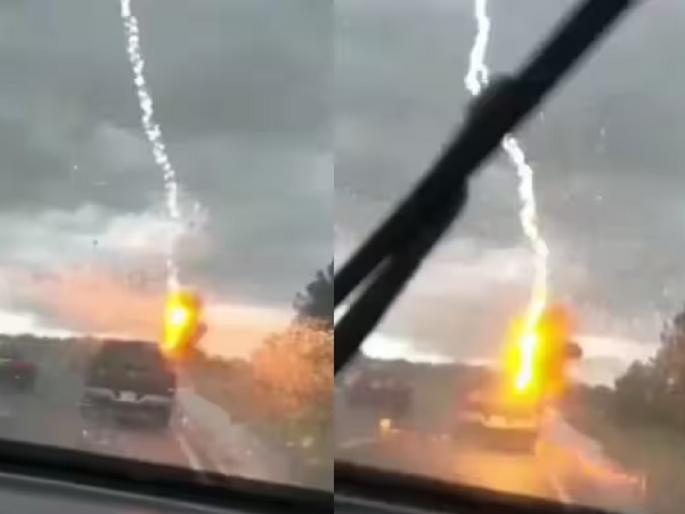 व्हायरल होत असलेल्या व्हिडिओ कारमधून घेण्यात आला आहे. यात कार रस्त्याने वेगाने धावताना दिसत आहे, यावेळी अचानक जमिनीवर वीज पडते आणि मोठा स्फोट होतो. हा स्फोट इतका जोरदार होता की, बॉम्बस्फोट झाल्याचा भास होतो. हा स्फोट किती जबरदस्त आहे, हे तुम्ही व्हिडिओमध्ये पाहू शकता. एखादी व्यक्ती तिथे उभी असती, तर त्याचा नक्कीच कोळसा झाला असता. सुदैवाने या घटनेत कोणाला इजा झाली नाही.