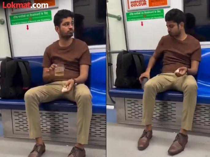 Delhi Metro Viral Video:दिल्लीमेट्रो गेल्या काही दिवसांपासून प्रवासाऐवजी इन्स्टाग्राम रील्सचे केंद्र बनलं आहे. अनेक इन्फ्लुएंसर दिल्लीमेट्रोमध्ये अनेक प्रकारचा कॉन्टेट तयार करतात. यामुळे कधी प्रेक्षकांचे मनोरंजन होते तर कधी व्हिडीओतून येऊ नये म्हणून तोंड लपवावे लागते. प्रशासनाकडून कारवाई होऊनही हे लोक काय थांबण्याचे नाव घेत नाहीत. त्यामुळे आता प्रवाशांचीही भीड चेपली आहे का असा प्रश्न निर्माण झालाय. कारण दिल्ली मेट्रोमध्ये एक प्रवासी मद्यपान करत असल्याचा दावा करणारा व्हिडीओ समोर आला आहे. मेट्रोत बसून एका प्रवाशाने मद्यपान केल्याचा व्हिडीओ सध्या तुफान व्हायरल होत आहे.