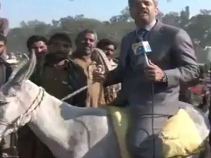 अमीन हापिज असं या पत्रकाराचं नाव असून याआधीही त्याचा एक व्हिडीओ व्हायरल झाला होता. याआधी त्याने एका गाढवावर बसून रिपोर्टिंग केलं होतं. त्यामुळे त्याचा व्हिडीओ व्हायरल होऊन तो चर्चेत आला होता.