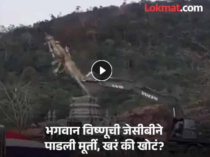 एक बुलडोजरसारखे वाहन आहे. त्याच्या मदतीने भगवान विष्णूची मूर्ती पाठीमागून धक्का देऊन पाडली जात असल्याचे व्हिडीओ मध्ये दिसत आहे.