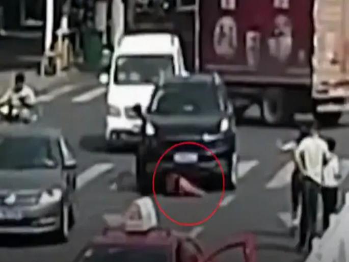 अपघात झाल्यानंतर महिला रस्त्यावर पडली. काही सेकंदातच एक एसयूव्ही गाडी आली आणि महिलेच्या अंगावरून गेली. तेवढ्यात आजूबाजूच्या लोकांनी ड्रायवरला गाडी थांबण्यास सांगितलं. त्यानंतर लोकांनी एकत्र येऊन एसयूव्ही गाडी उचलली आणि महिलेला बाहेर काढलं.