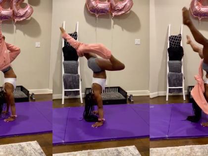 लोक लॉकडाऊनमुळे घरातच आहेत. त्यामुळे लोक वेगवेगळे चॅलेन्जेस घेत आहेत. काही दिवसांपूर्वीच ऑलम्पिक चॅम्पियन सिमोन बाइल्सने एक चॅलेन्ज पूर्ण केलं. तिचा व्हिडीओ चांगलाच व्हायरलही झाला होता. तिनेही लोकांना Handstand Challenge दिलं होतं. यात उलटं होऊन पॅंट काढायची होती. याच धरतीवर एक महिला एक व्हिडीओ करत होती. पण मधेच कुत्र्याने येऊन सगळा व्हिडीओ बिघडून टाकला.
