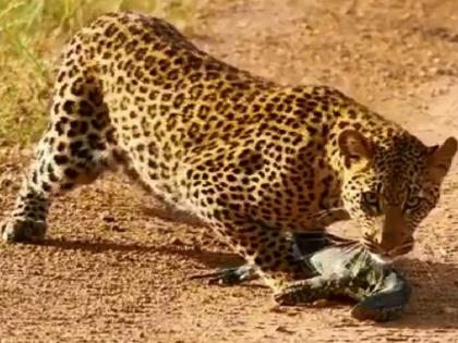 सध्या सोशल मीडियावर एका माकडाचा वाघाचं बछडं घेऊन पळाल्याचा व्हिडीओ चर्चेत असतानाच एका बिबट्याचा आणि घोरपडीचा व्हिडीओ व्हायरल झाला आहे.