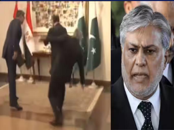 इस्लामाबादमध्ये सौदी अरब, तुर्किये आणि इजिप्तच्या परराष्ट्र मंत्र्यांची चारपक्षीय बैठक बोलावण्यात आली होती. या विदेशी पाहुण्यांचे स्वागत करण्यासाठी इशाक डार परराष्ट्र मंत्रालयाच्या बाहेर आले होते. रेड कार्पेटवरून चालत असताना, स्टाईलमध्ये केसांवरून हात फिरवत ते पाहुण्यांच्या दिशेने जात होते. पण, तितक्यात त्यांचा पाय घसरला आणि ते थेट जमिनीवर आडवे झाले.