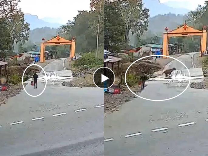 Tiger Man Viral Video : अशी कल्पना करा की तुम्ही कुठेतरी पायी जात आहात आणि अचानक तुम्हाला तुमच्या समोर वाघ दिसला, तुम्ही काय कराल? अशी परिस्थिती कोणावर ओढवली तर एखाद्याचे जीवन उद्ध्वस्त होऊ शकते हे उघड आहे. असाच एक व्हिडीओ उत्तराखंडमधून समोर आला आहे, जो पाहिल्यानंतर लोकांची चांगलीच तारांबळ उडाली आहे. व्हिडिओमध्ये एक व्यक्ती बॅग घेऊन मंदिराकडे जात असताना अचानक वाघ समोरून येतो. त्यापुढे काय घडलं, वाचा.