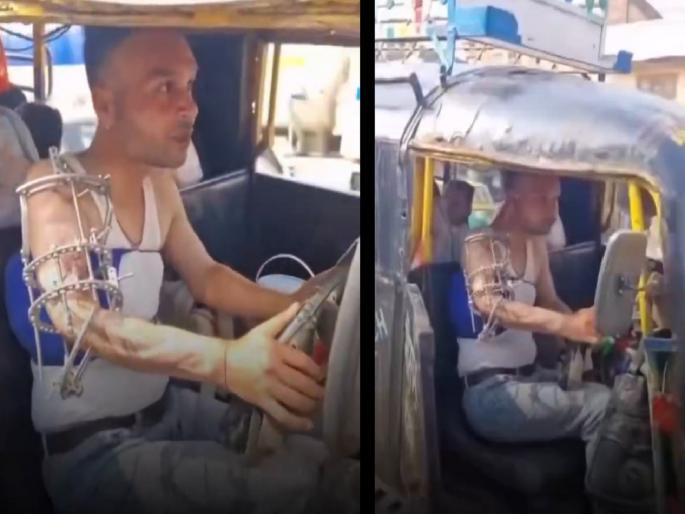 व्हायरल व्हिडिओमध्ये संबंधित व्यक्तीच्या उजव्या हातात खांद्यापासून कोपरापर्यंत मेटल रॉड बसवलेली दिसते. हे रॉड सहसा गंभीर फ्रॅक्चरनंतर हाडे जोडण्यासाठी वापरली जातात. अशा वेदनादायक परिस्थितीतही हा चालक ऑटो चालवत असल्याने अनेकजण त्याच्या जिद्दीचे कौतुक करत आहेत.