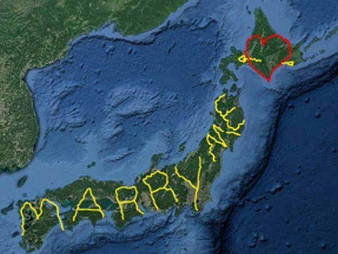 जगातलं जर सर्वात यूनिक मॅरेज प्रपोजल काही असेल तर ते तुम्हाला यात बातमीत वाचायला मिळेल. जपानमधील ही घटना आहे. टोकियोचा आर्टिस्ट Yasushi Yassan Takahashi ने इतका प्रवास केला की, त्याने गुगल अर्थवर Marry Me असं लिहिलं.