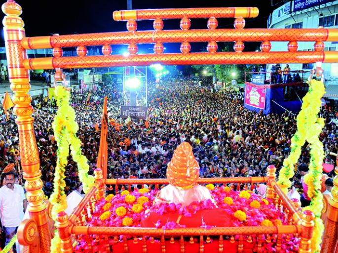 रात्री १२ वाजता ‘झुलवा पाळणा.. पाळणा बाळ शिवाजीचा’ हे पाळणा गीत सुरू झाले आणि हजारो महिला, शिवभक्तांनी जल्लोष केला. ज्या क्षणाची सर्व जण वाट पाहत होते तो पाळण्याचा कार्यक्रम सुरू झाला. जमलेल्या महिला, मुले टाळ्या वाजवीत पाळण्याच्या गीताला दाद देऊ लागली. फुले उधळू लागली. आकाशात फटाक्यांची आतषबाजी सुरू झाली. ‘जय जिजाऊ-जय शिवराय’, ‘छत्रपती शिवाजी महाराज की जय’चा जयघोष गगनात दुमदुमला. हवेत भगवा झेंडा गरगर फिरला आणि पुन्हा जय शिवरायचा जयघोष झाला.