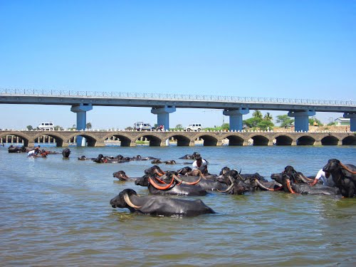 शनिवारी सकाळी १० च्या सुमारास पंढरपूर शहराला पाणीपुरवठा करणाºया बंधाºयाच्या खालील बाजूस चंद्रभागा नदीत चक्क जेसीबी, ट्रॅक्टर, रिक्षा, मोटरसायकली धुतल्या जात होत्या़ वाहने धुण्याचे काम दुपारी १२ वाजेपर्यंत सुरुच होते़ त्याप्रमाणे म्हशीसह अन्य जनावरे तर नित्यनियमाने धुतली जातात़ शहरातील महिलाही धुणे धुण्यासाठी चंद्रभागेत जातात. साबण, निरम्याचे पाणी पात्रात मिसळल्याने प्रदूषणात वाढ होण्याची शक्यता असते. हे नित्यनियमाने घडत असताना मात्र त्यांचे नगरपरिषद प्रशासन काहीच कारवाई करताना दिसून येत नाही.