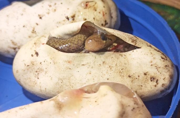 अशी घेतली अंड्यांची काळजी- सापांची अंडी रबरासारखी मऊ कवचाची व लांबट असतात. त्यांना योग्य तापमानासोबत योग्य आर्द्रता द्यावी लागते. एका मोठ्या बरणीत वाळू, खडी आणि फरशीचे तुकडे व तसेच अर्धा ग्लासभर पाणी टाकून योग्य तापमान तयार केले. त्यात अंडी ठेवली. अंडी मिळालेल्या दिवसापासून ११५ दिवसांत सात अंड्यांपैकी पाच अंड्यातून पाच पिल्लांचा जन्म झाला. ही सापाची पिल्ले साधारण १० ते १२ इंच लांबीची आहेत. लहानपणापासूनच छोटी पाल, उंदीर, कीटक यांची शिकार करून निसर्गात राहू शकतात.