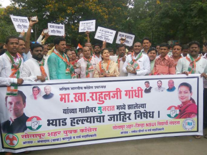 मोदी, शहा, भाजपच्या नावाचे धोंडे दाखवून सोलापूरात राहुल गांधी यांच्यावरील भ्याड हल्ल्याचा निषेध